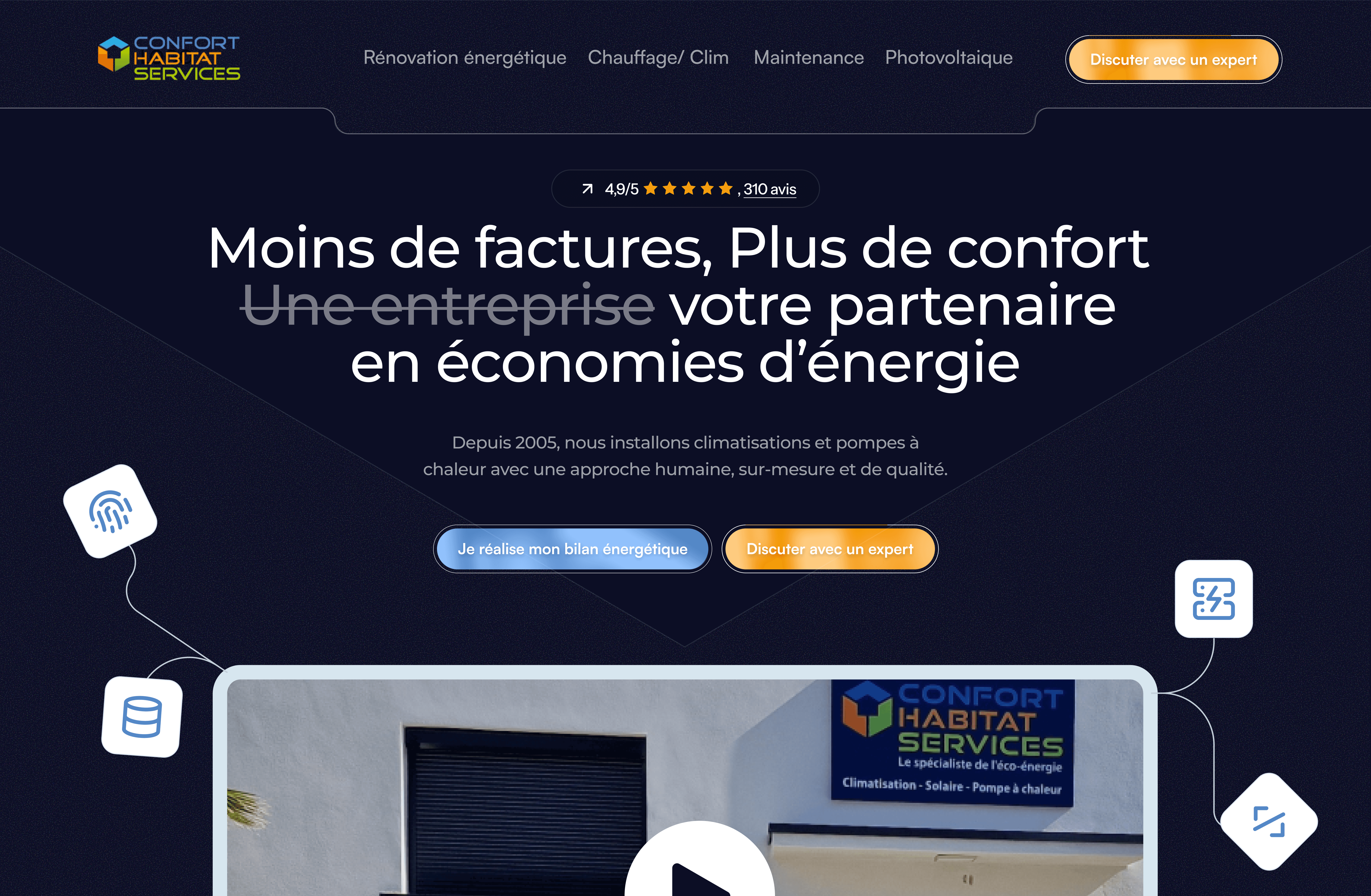 Chaque pixel est là pour faire avancer le visiteur : copywriting, design, UX. Objectif ? Vous faire signer plus.